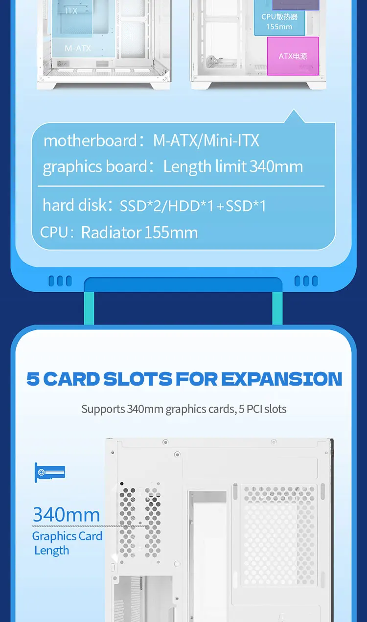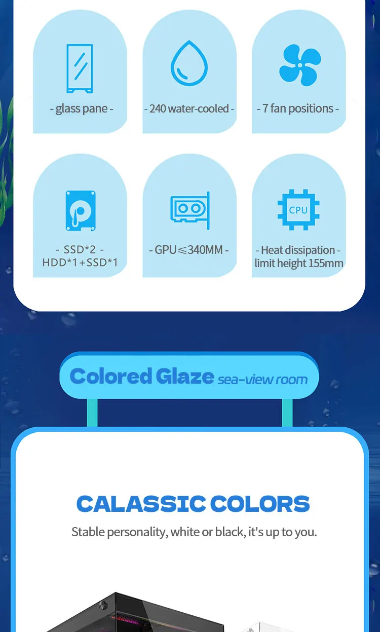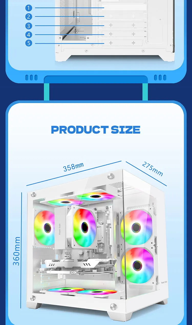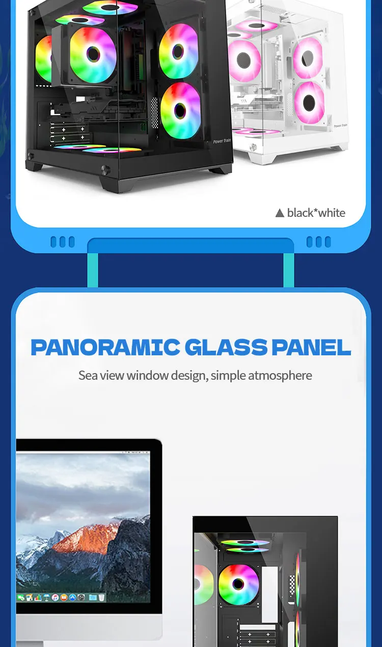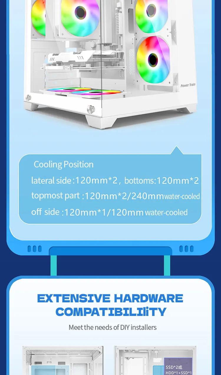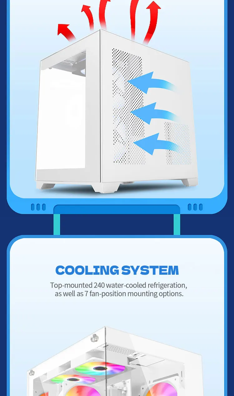 Experience a panoramic 270° full-view tempered-glass chassis with no center columns — a seamless showcase of your components. Built to support a 240mm water-cooling system, it ensures top-tier airflow and performance for high-end gaming or workstation builds.